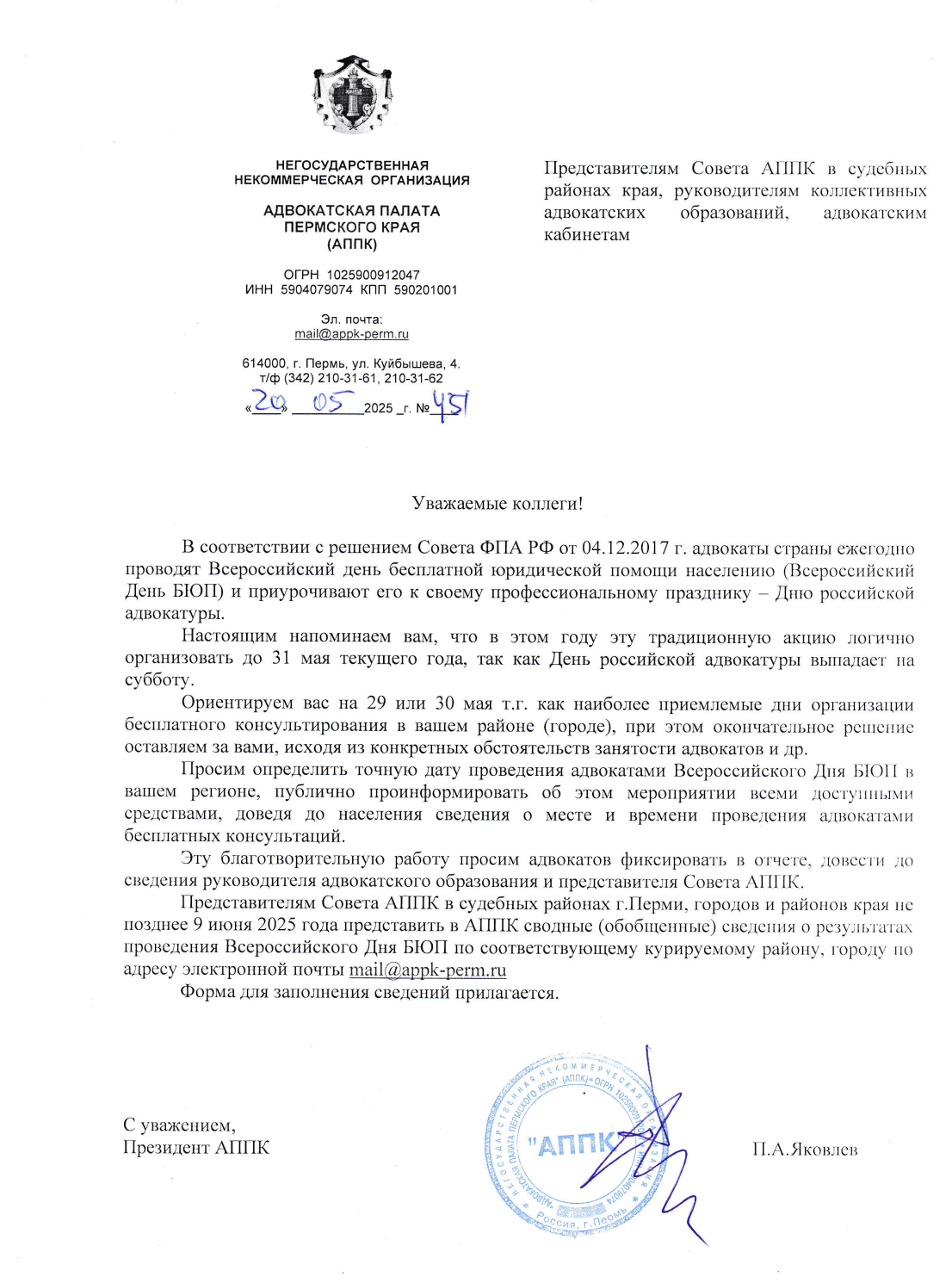 В связи с исполнением адвокат Полынь Оксана Николаевна осуществляет бесплатные юридические консультации 30.05.2025 года запись по телефону +7 (919) 712-55-55